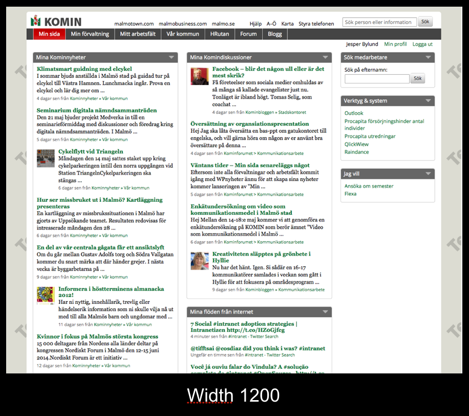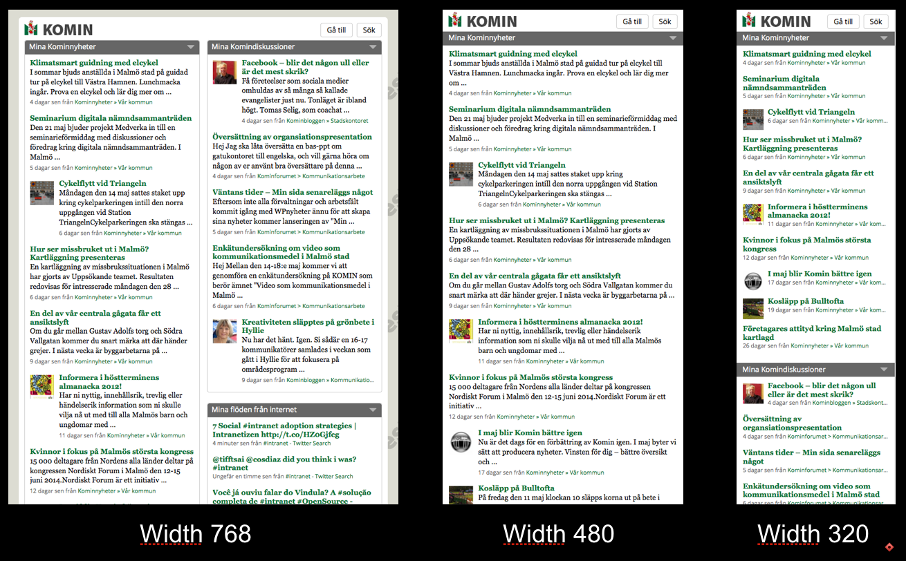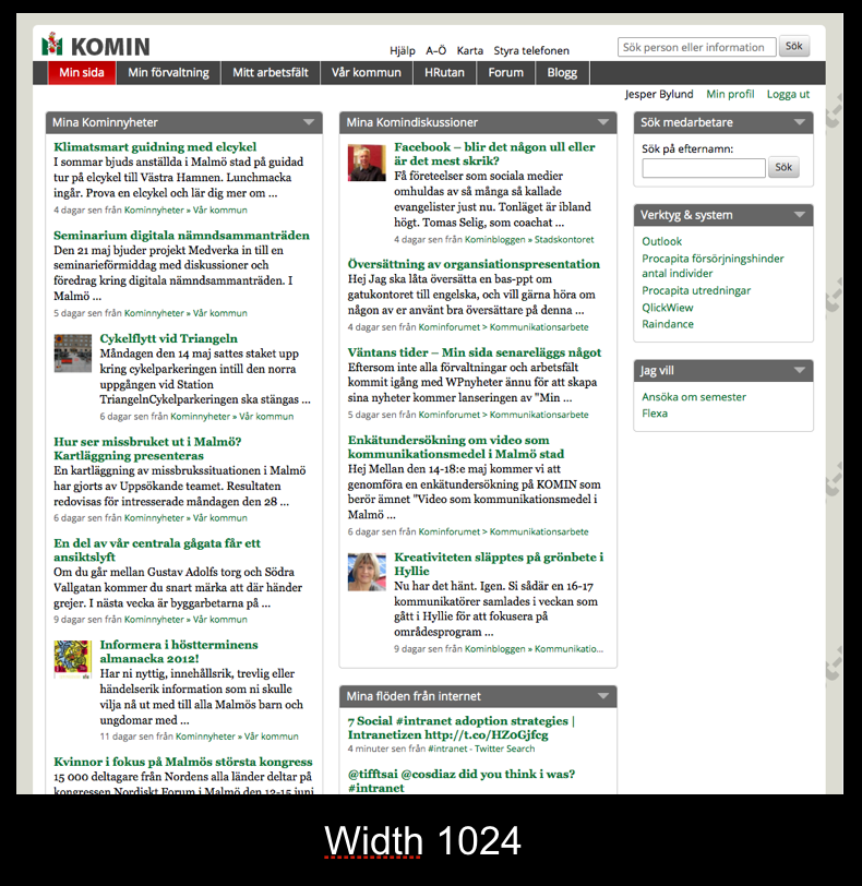 Our dashboard was the first RWD test for us. This summer we will make the other parts of the intranet responsive as well.