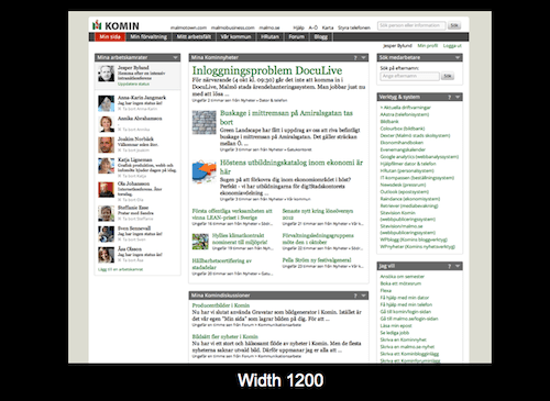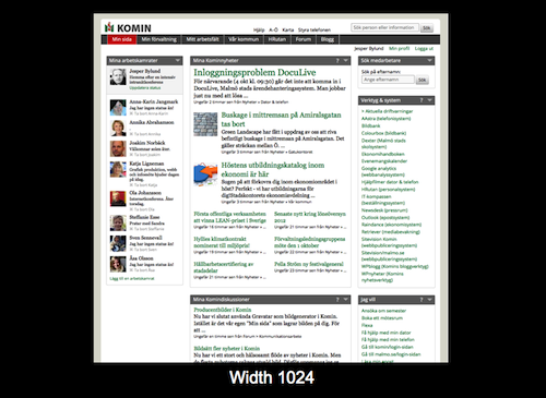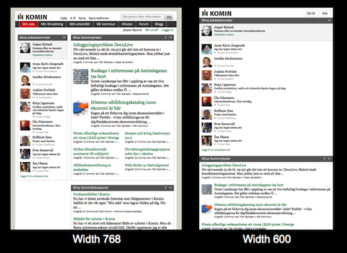 So how does this look? Since our intranet is not open for all I can not invite you to a first hand try-out. But below are some screen shots that show the same page in different sizes.